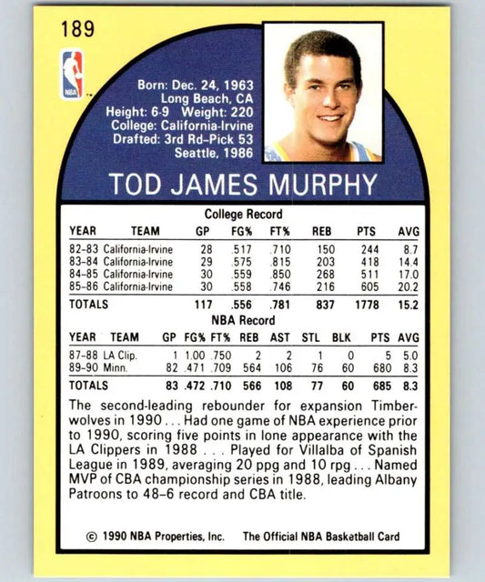 1990-91 Hoops #189 Tod Murphy NM-MT Minnesota Timberwolves Basketball Card