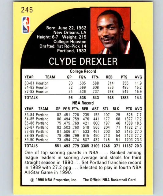 1990-91 Hoops #245 Clyde Drexler NM-MT Portland Trail Blazers Basketball Card