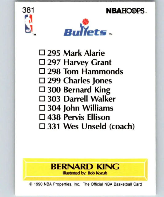 1990-91 Hoops #381 Bernard King TC NM-MT Washington Bullets Basketball Card