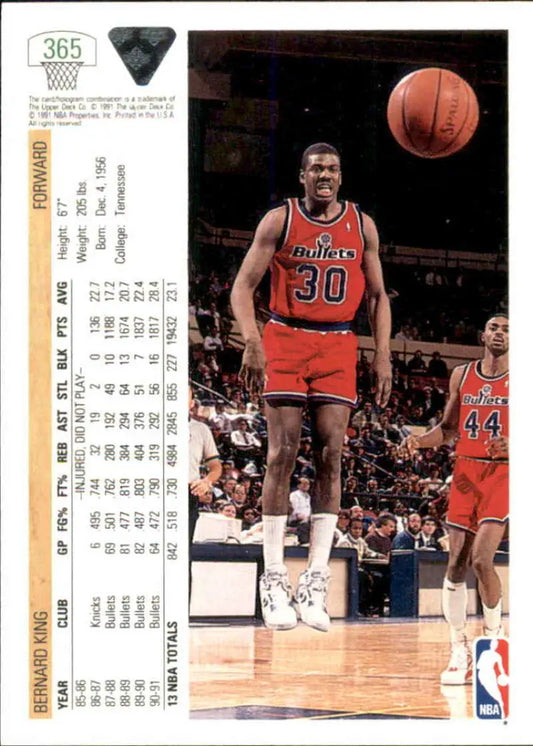 1991-92 Upper Deck #365 Bernard King NM-MT Washington Bullets Basketball Card