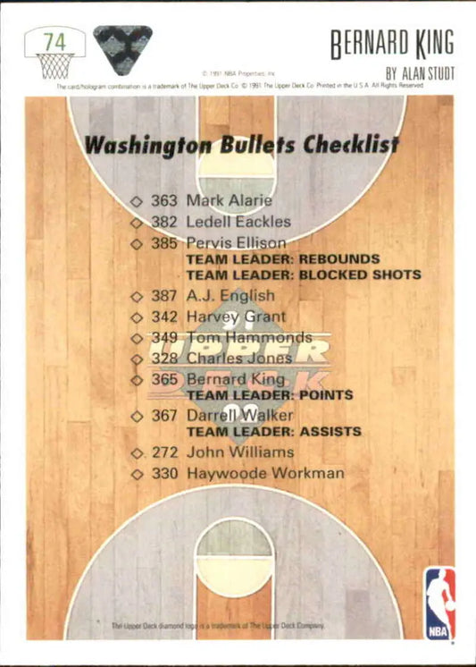1991-92 Upper Deck #74 Bernard King TC NM-MT Washington Bullets Basketball Card