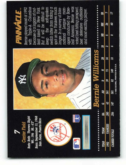 1993 Pinnacle #7 Bernie Williams NM-MT New York Yankees Baseball Card