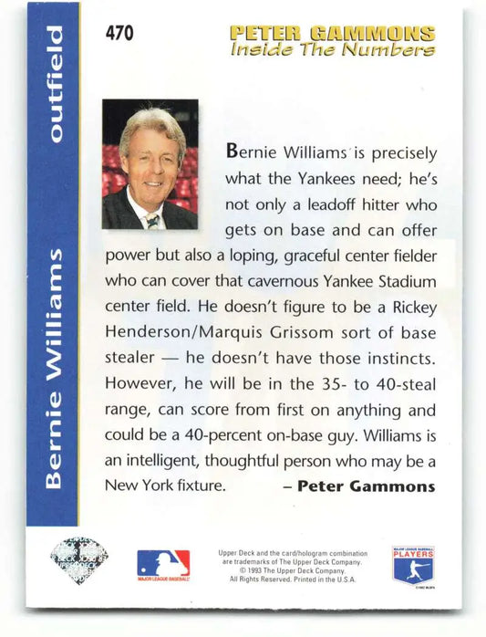 1993 Upper Deck #470 Bernie Williams VG New York Yankees Baseball Card