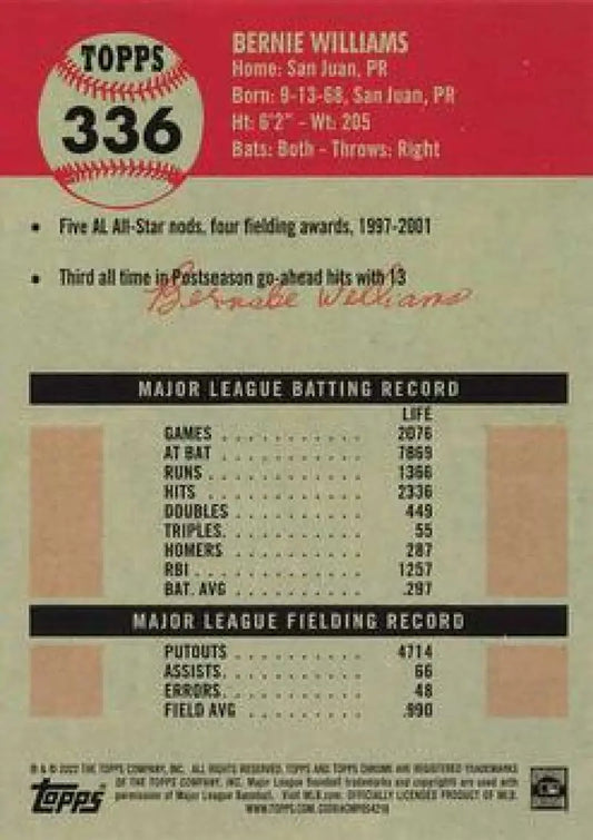 2022 Topps Chrome Platinum Anniversary #336 Bernie Williams NM-MT New York Yankees Baseball Card