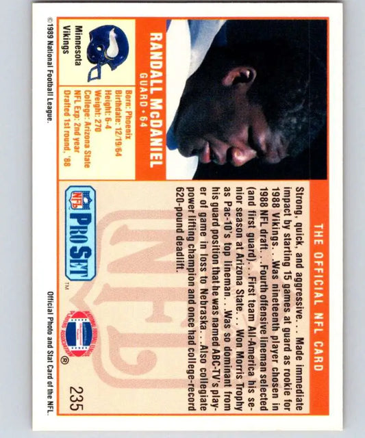 1989 Pro Set #235 Randall McDaniel NM-MT RC Rookie Minnesota Vikings Football Card