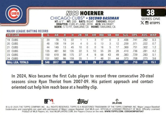 2025 Topps #38 Nico Hoerner NM-MT Chicago Cubs Baseball Card