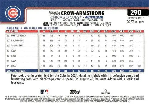 2025 Topps #290 Pete Crow-Armstrong NM-MT Cubs ID:77015
