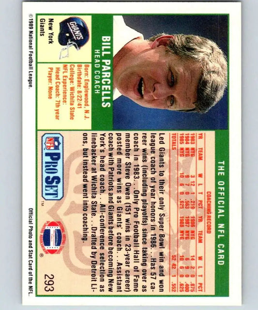 1989 Pro Set #293 Bill Parcells/ NM-MT RC Rookie New York Giants Football Card