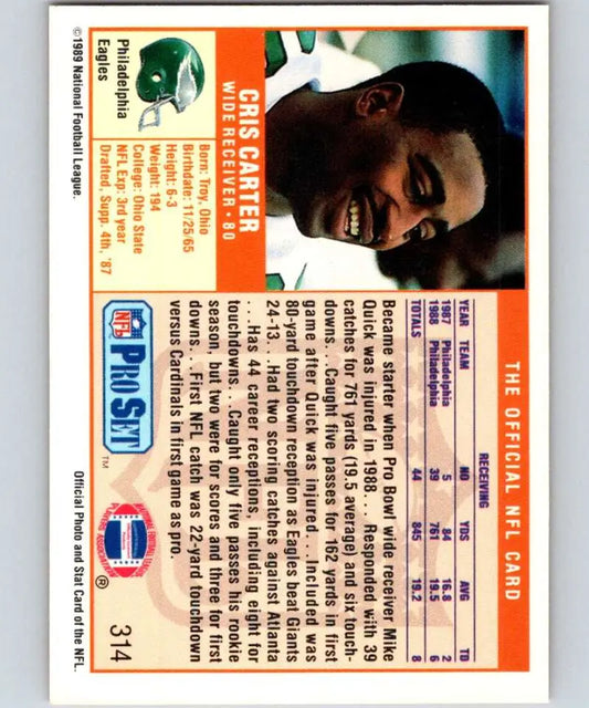 1989 Pro Set #314 Cris Carter NM-MT RC Rookie Philadelphia Eagles Football Card