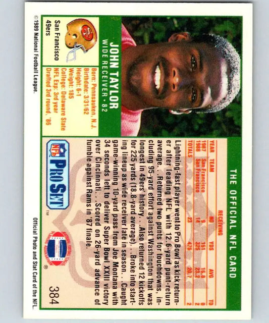 1989 Pro Set #384 John Taylor NM-MT RC Rookie San Francisco 49ers Football Card