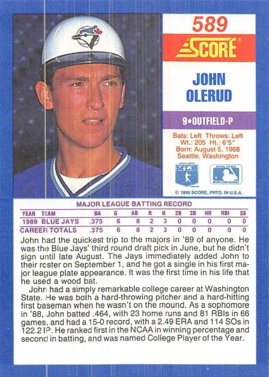 1990 Score #589 John Olerud NM-MT RC Rookie Toronto Blue Jays Baseball Card