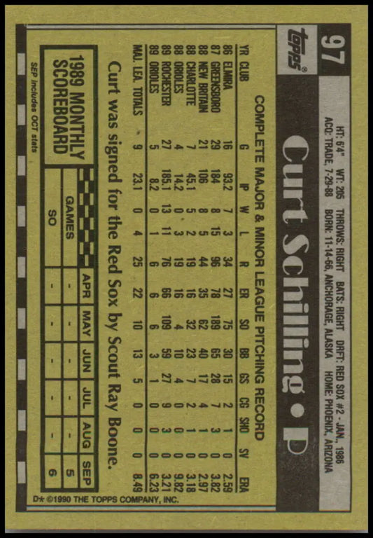 1990 Topps #97 Curt Schilling NM-MT Baltimore Orioles Baseball Card