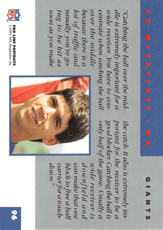 1991 Pro Line Portraits #96 Ed McCaffrey EX-NM RC Rookie New York Giants Football Card
