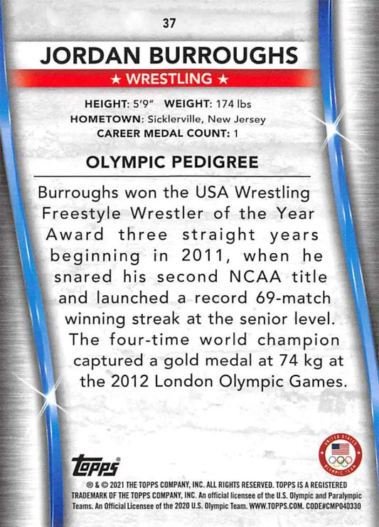 2021 Topps US Olympics and Paralympics Team Hopefuls NM-MT #37 Jordan Burroughs Wrestling Card