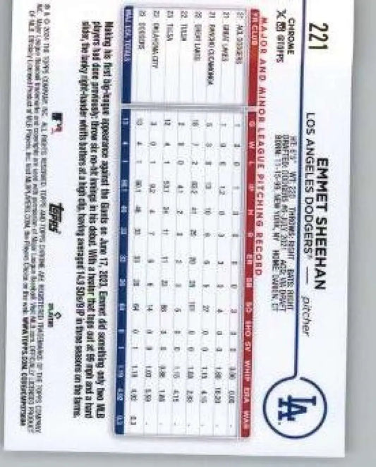 2024 Topps Chrome #221 Emmet Sheehan NM-MT RC Rookie Los Angeles Dodgers Baseball Card