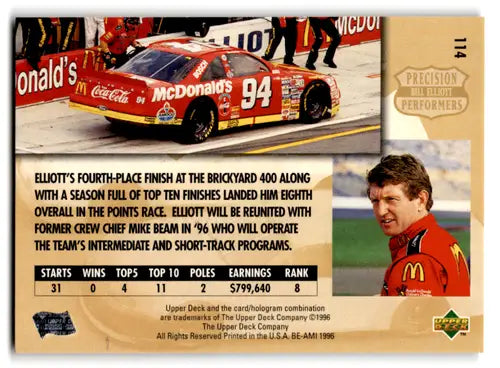 1996 Upper Deck #114 Bill Elliott NM-MT PP ID:77672