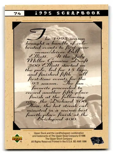 1996 Upper Deck #74 Bill Elliott NM-MT SB ID:77632