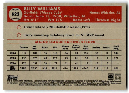 2021 Topps Chrome Platinum Anniversary #622 Billy Williams NM-MT Chicago Cubs Baseball Card