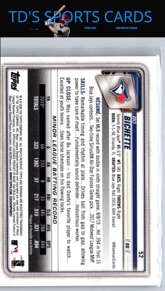 2020 Bowman #52 Bo Bichette