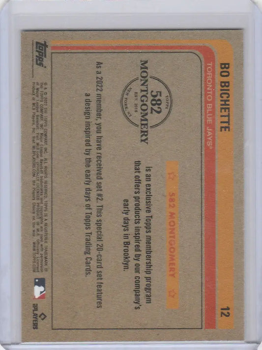 2022 Topps 582 Montgomery Club Set #3 Lost Designs #12 Bo Bichette Blue Jays