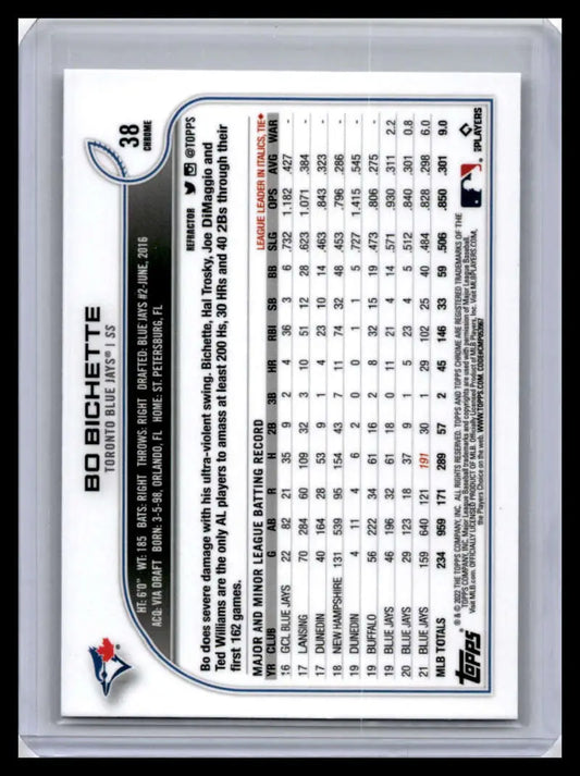 2022 Topps Chrome #38 Bo Bichette NM-MT Toronto Blue Jays Baseball Card