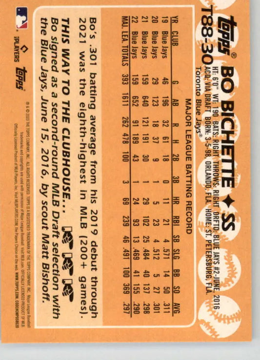 2023 Topps 1988 Baseball #T88-30 Bo Bichette NM-MT Toronto Blue Jays Baseball Card