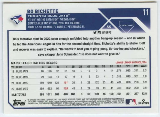 2023 Topps Chrome #11 Bo Bichette NM-MT Toronto Blue Jays Baseball Card