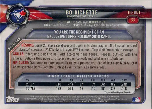Topps Holiday Baseball 2018 Bowman Base Card TH-BBI Bo Bichette