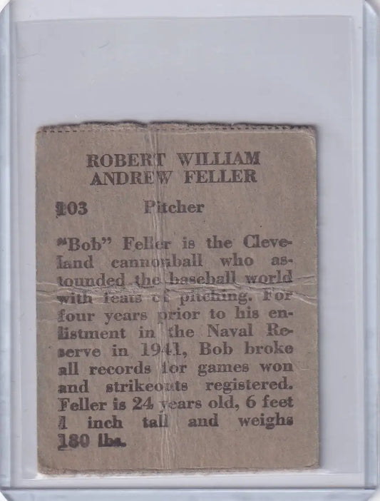 1943 R302-01 M.P. & Co Bob Feller - Cleveland Indians