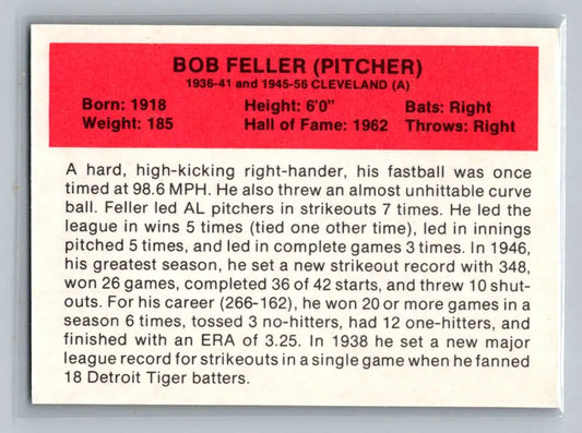 1987 Hygrade All-Time Greats #NNO Bob Feller Hat logo not visible Indians