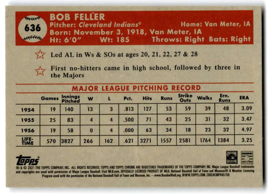 2021 Topps Chrome Platinum Anniversary #636 Bob Feller NM-MT Cleveland Indians Baseball Card