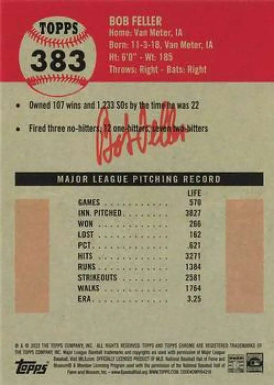 2022 Topps Chrome Platinum Anniversary #383 Bob Feller NM-MT Cleveland Baseball Card