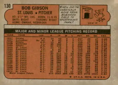 1973 Topps Baseball #190 Bob Gibson - St. Louis Cardinals