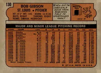 1970 Topps Baseball #530 Bob Gibson - St. Louis Cardinals