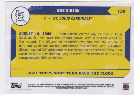 2021 TURN BACK THE CLOCK #138 BOB GIBSON- ST LOUIS CARDINALS
