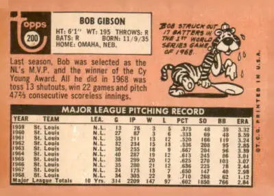 1969 Topps #200 Bob Gibson EX