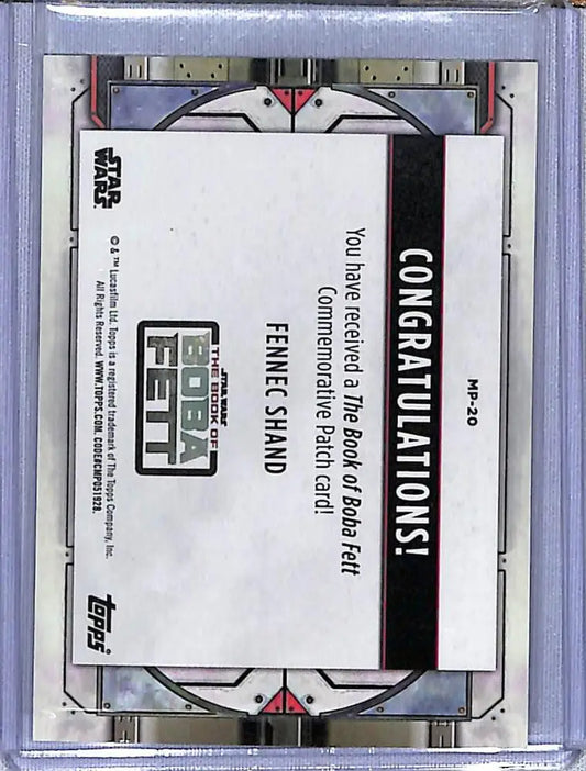 2022 Topps Star Wars: The Book of Boba Fett Commemorative Patch #MP-20 Fennec Shand NM-MT NonSport Card