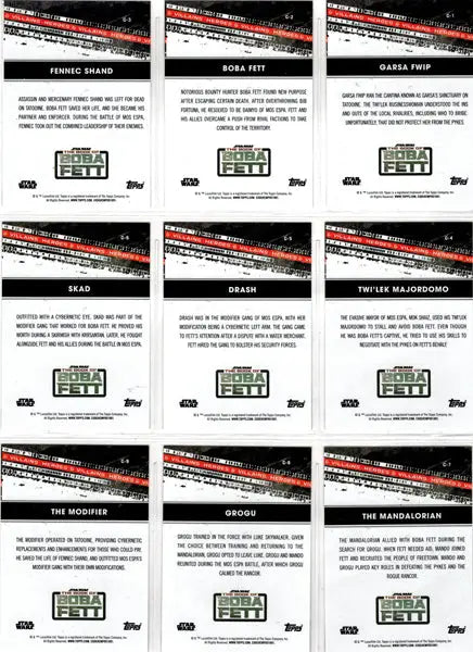 Topps 2022 Star Wars Boba Fett Characters Complete 15 Card Set C-1 - C-15