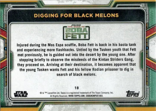 Topps 2022 Star Wars Boba Fett Purple Parallel Card 18 "Digging For Black..."