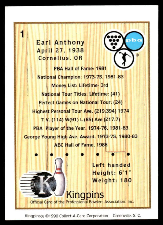 1990 Kingpins #1 Earl Anthony NM-MT PBA Bowling Card