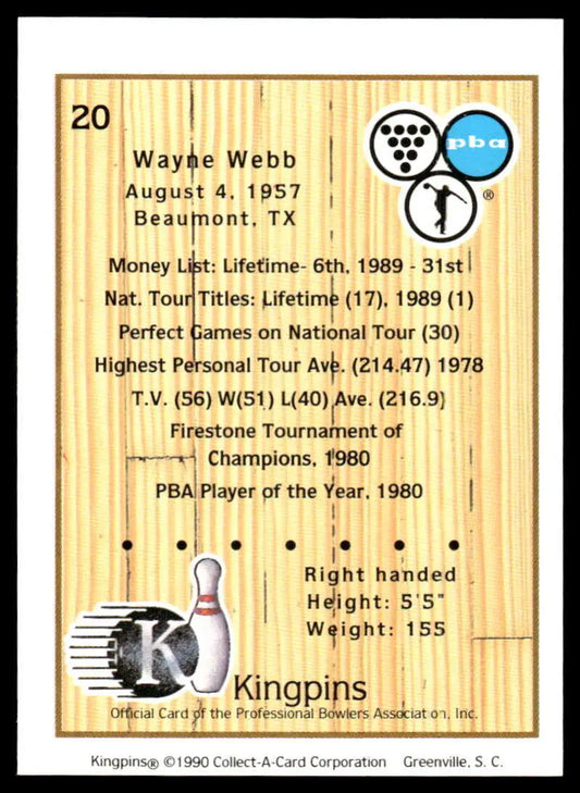 1990 Kingpins #20 Wayne Webb NM-MT PBA Bowling Card