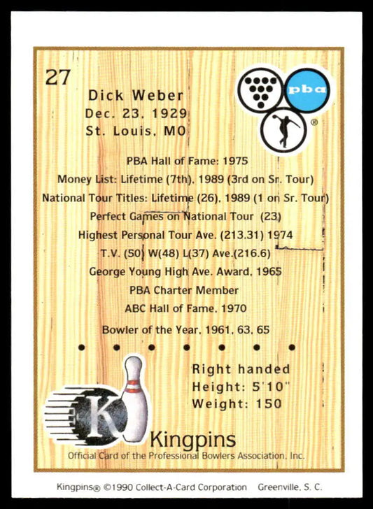 1990 Kingpins #27 Dick Weber NM-MT PBA Bowling Card