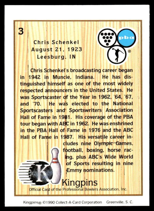 1990 Kingpins #3 Chris Schenkel NM-MT PBA Bowling Card