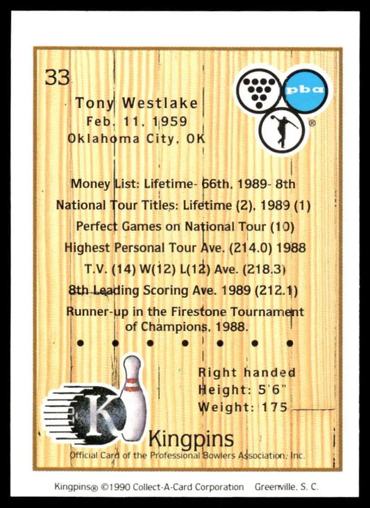 1990 Kingpins #33 Tony Westlake NM-MT PBA Bowling Card