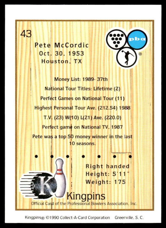1990 Kingpins #43 Pete McCordic NM-MT PBA Bowling Card