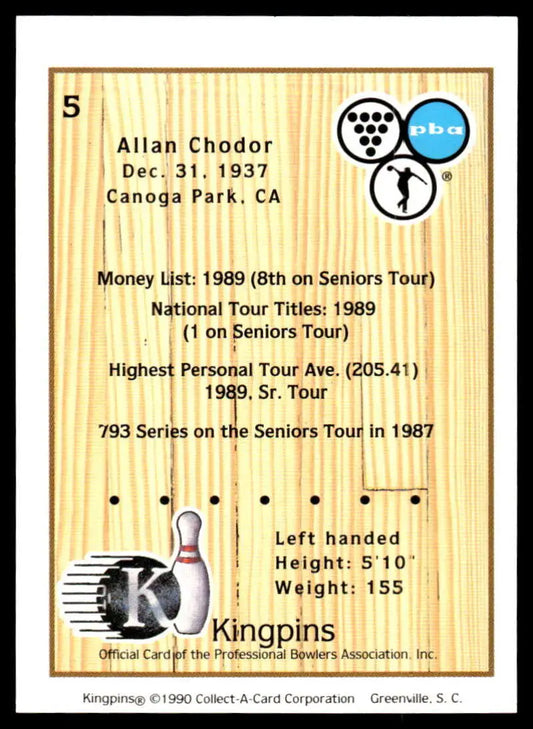1990 Kingpins #5 Allan Chodor NM-MT PBA Bowling Card