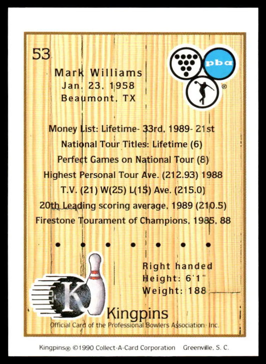 1990 Kingpins #53 Mark Williams NM-MT PBA Bowling Card