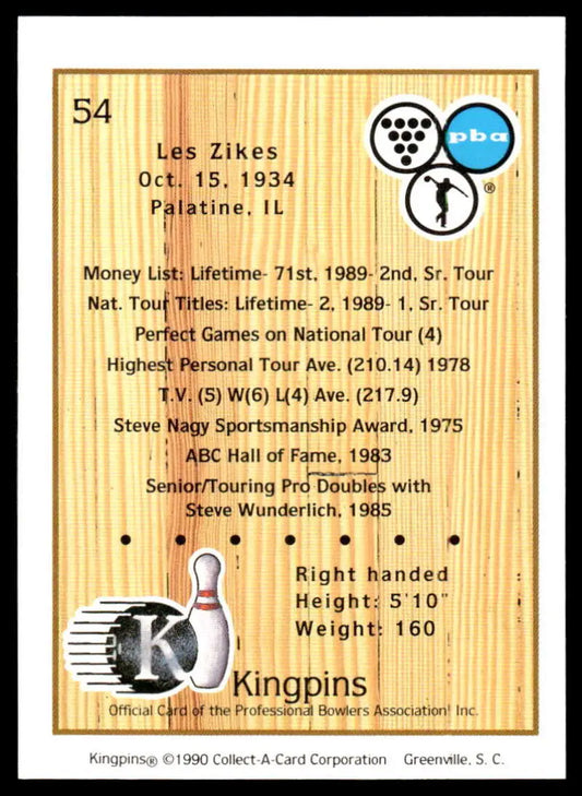 1990 Kingpins #54 Les Zikes NM-MT PBA Bowling Card