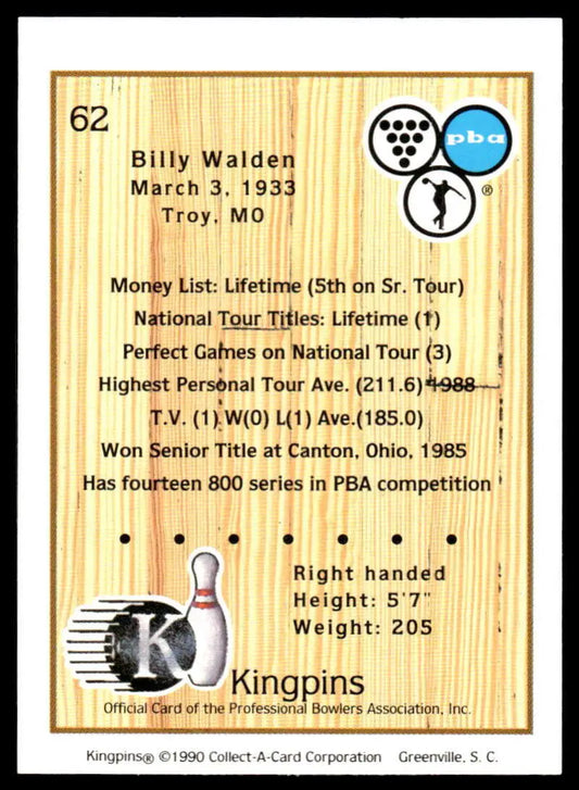 1990 Kingpins #62 Billy Walden NM-MT PBA Bowling Card