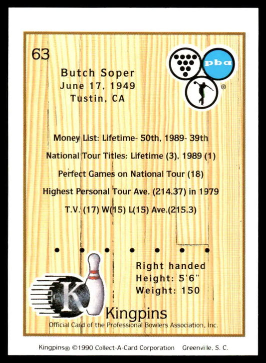 1990 Kingpins #63 Butch Soper NM-MT PBA Bowling Card
